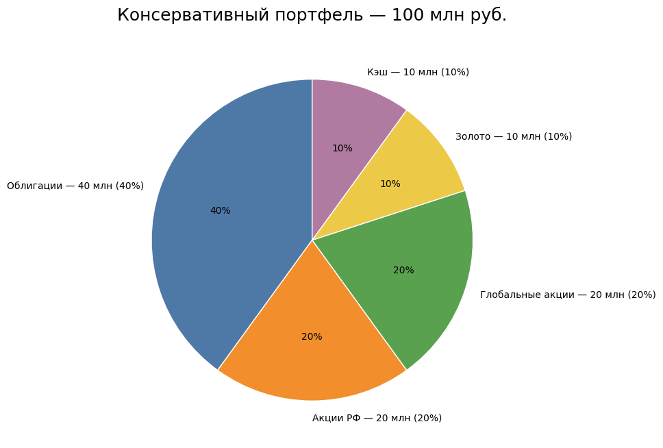 Консервативный портфель — 100 млн руб.